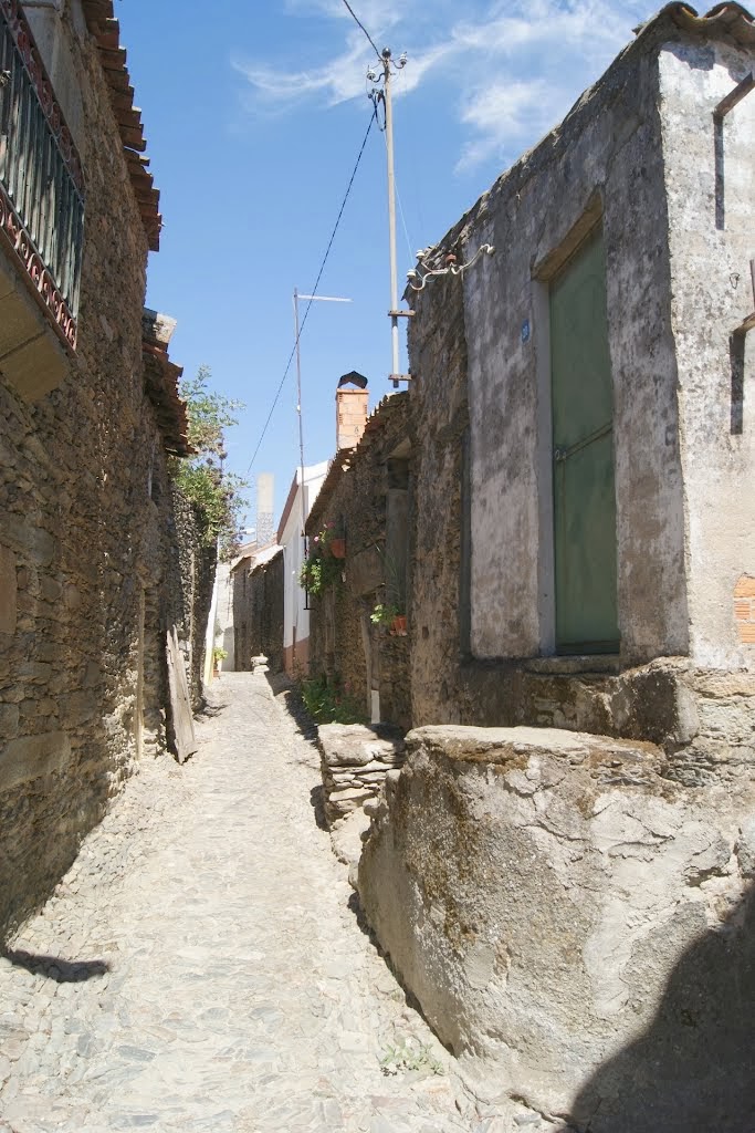 casas de xisto, distribuídas por um estreito e acanhado arruamento que